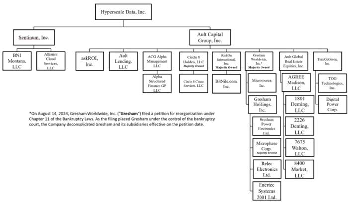 Hyperscale Data, Inc., a Delaware corporation formerly known as Ault Alliance, Inc., was incorporated in September 2017. Through our wholly and majority owned subsidiaries and strategic investments, we own and/or operate data centers at which we mine Bitcoin and offer colocation and hosting services for the emerging artificial intelligence (“AI”) ecosystems and other industries as well as provide mission-critical products that support a diverse range of industries, including an artificial intelligence software platform, a social gaming platform, equipment rental services, defense/aerospace, industrial, automotive, medical/biopharma and hotel operations. Our direct and indirect wholly owned subsidiaries include (i) Sentinum, Inc. (“Sentinum”), (ii) Alliance Cloud Services, LLC (“ACS”) and (iii) BNI Montana, LLC (“BNI Montana”).