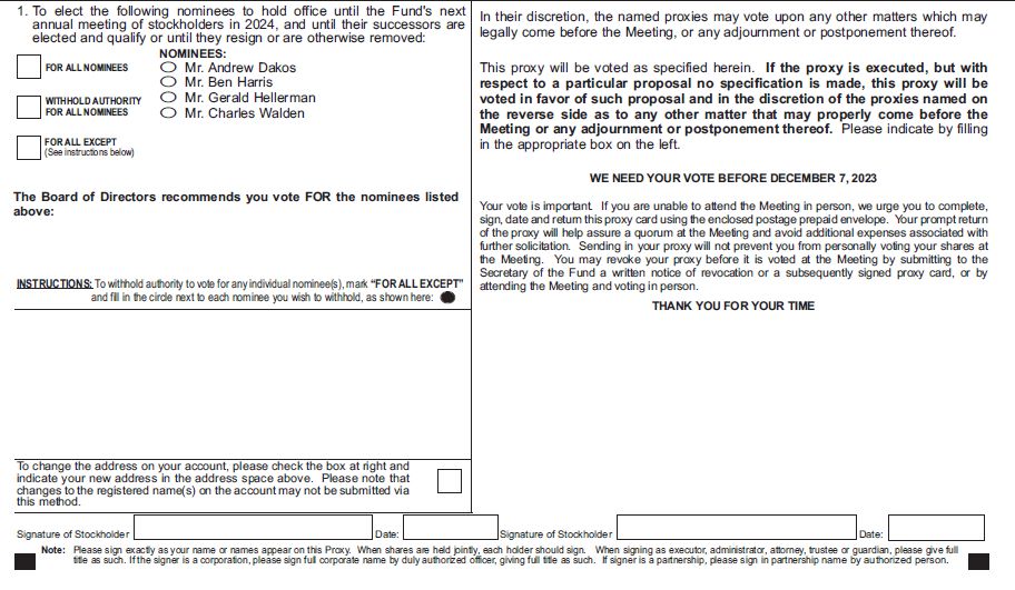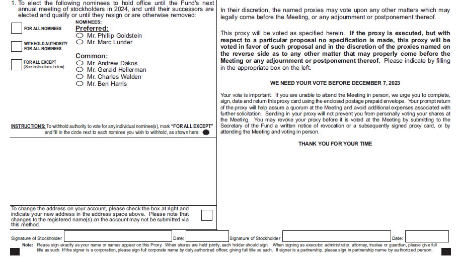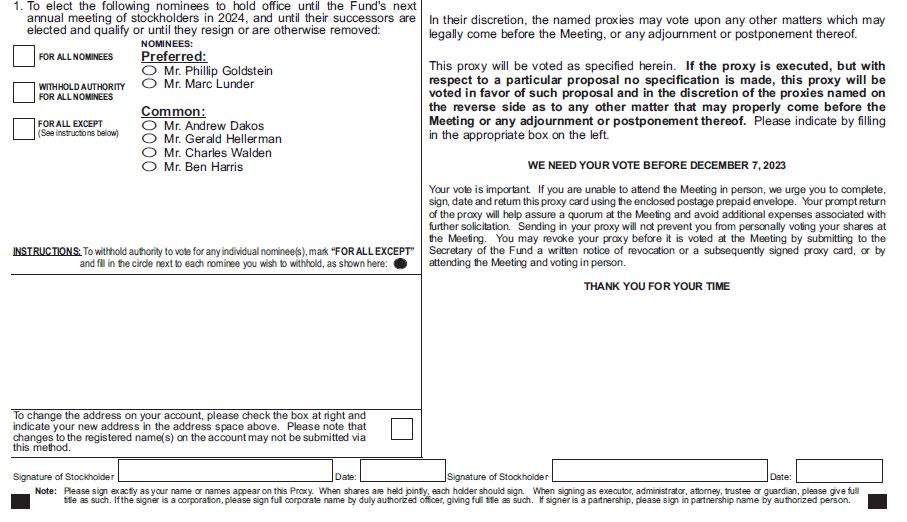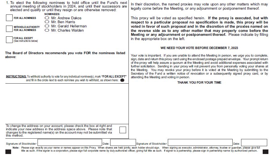 elected by the holders of the Fund’s common stock and preferred stock, voting together as a single class, to serve until the Fund’s next Annual Meeting of Stockholders in 2024 and until their successors have been duly elected and