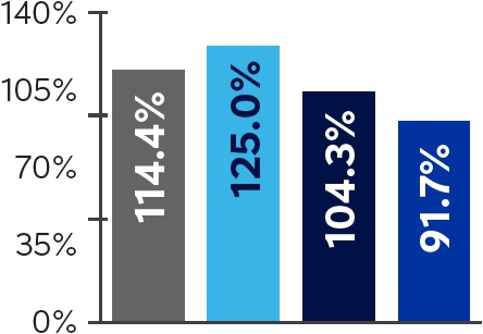●Net investment income of $2.5 billion in 2023 was $75 million higher than prior year as higher market-based investment income was partially offset by lower performance-based results. Total return on the $66.7 billion (as of 12/31/23) investment portfolio was 6.7% in 2023. Proactive portfolio management repositioned the fixed income portfolio into longer duration and higher-yielding assets that increased income. |