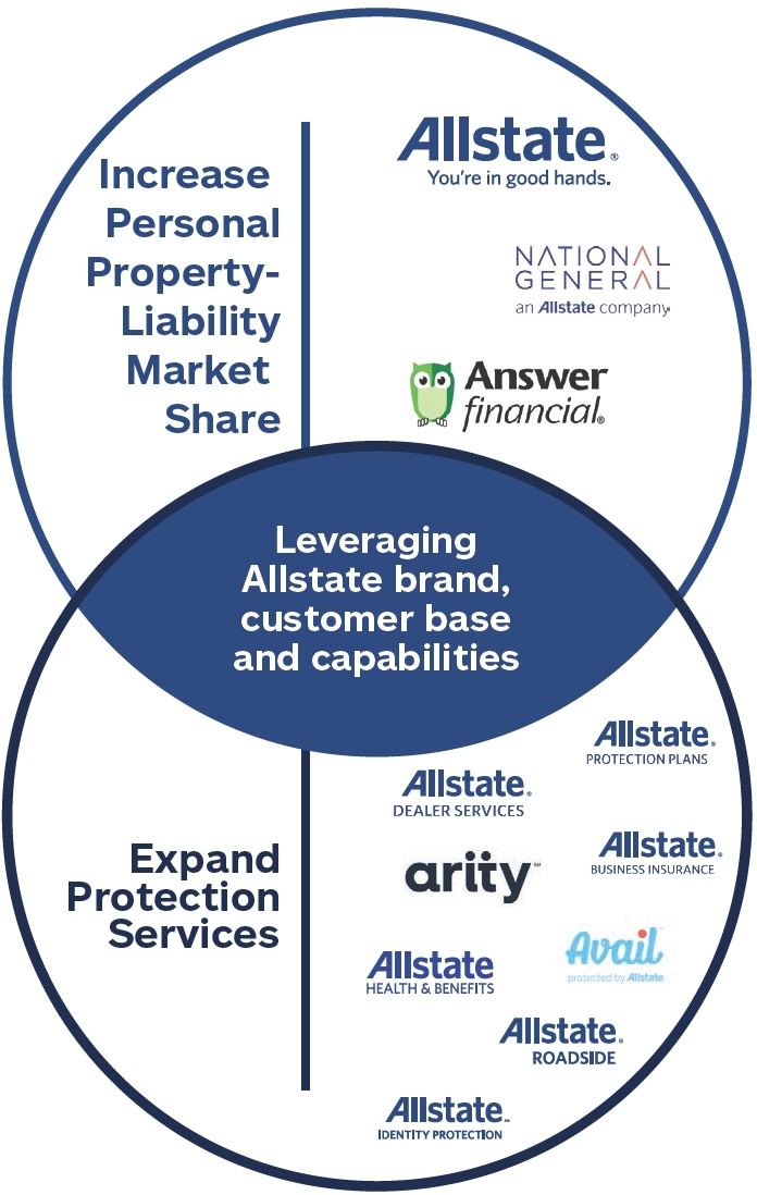 Allstate’s strategy is to grow property-liability insurance market share and expand protection provided to customers.