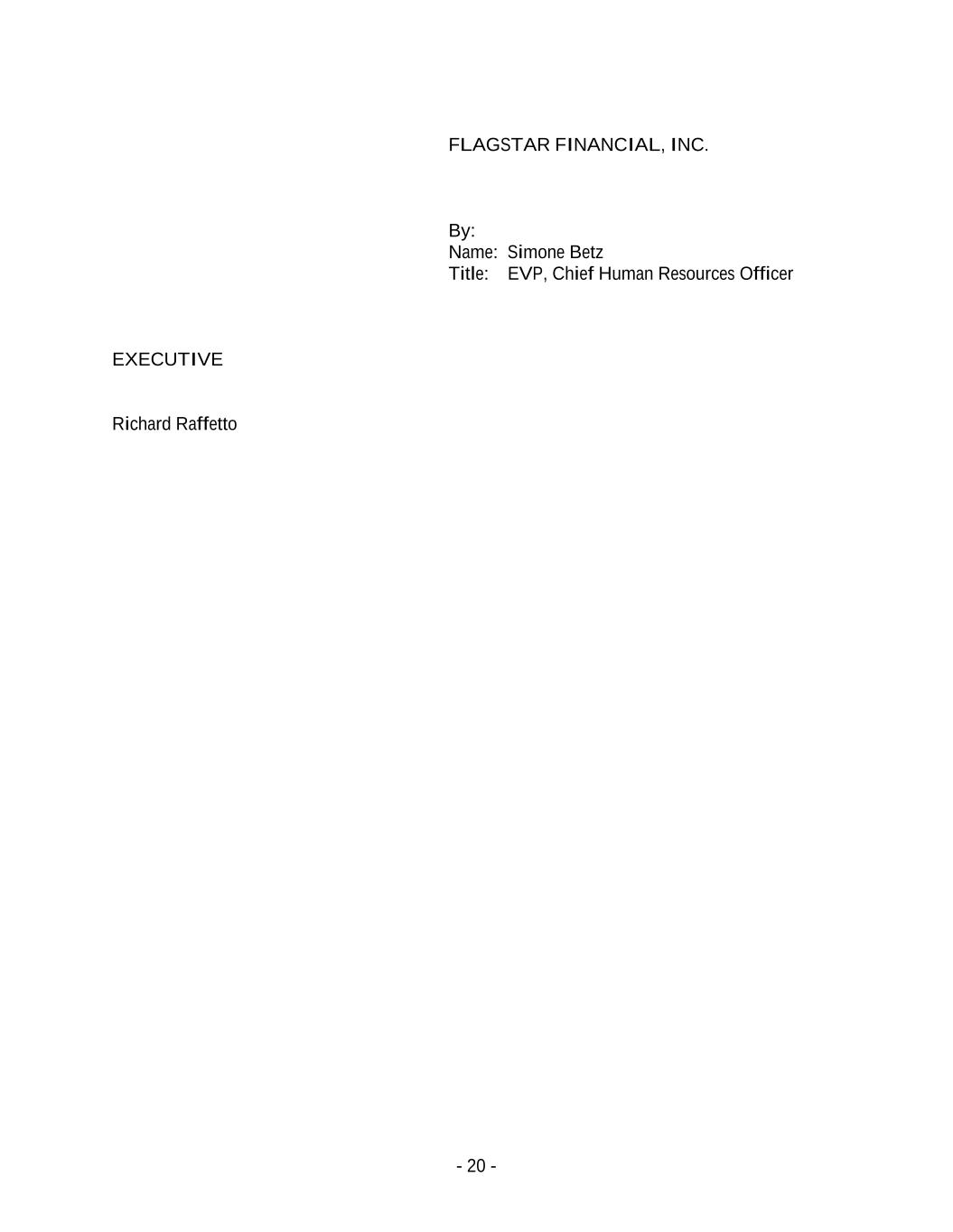 - 20 - FLAGSTAR FINANCIAL, INC. By: Name: Simone Betz Title: EVP, Chief Human Resources Officer EXECUTIVE Richard Raffetto