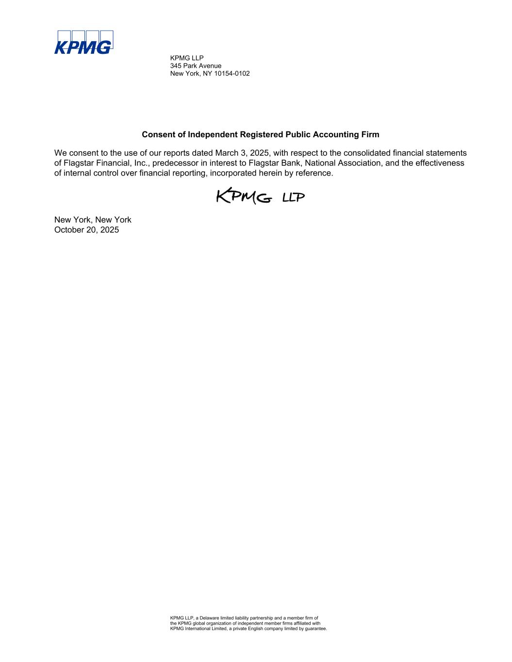 KPMG LLP 345 Park Avenue New York, NY 10154-0102 KPMG LLP, a Delaware limited liability partnership and a member firm of the KPMG global organization of independent member firms affiliated with KPMG International Limited, a private English company limited by guarantee. Consent of Independent Registered Public Accounting Firm We consent to the use of our reports dated March 3, 2025, with respect to the consolidated financial statements of Flagstar Financial, Inc., predecessor in interest to Flagstar Bank, National Association, and the effectiveness of internal control over financial reporting, incorporated herein by reference. New York, New York October 20, 2025