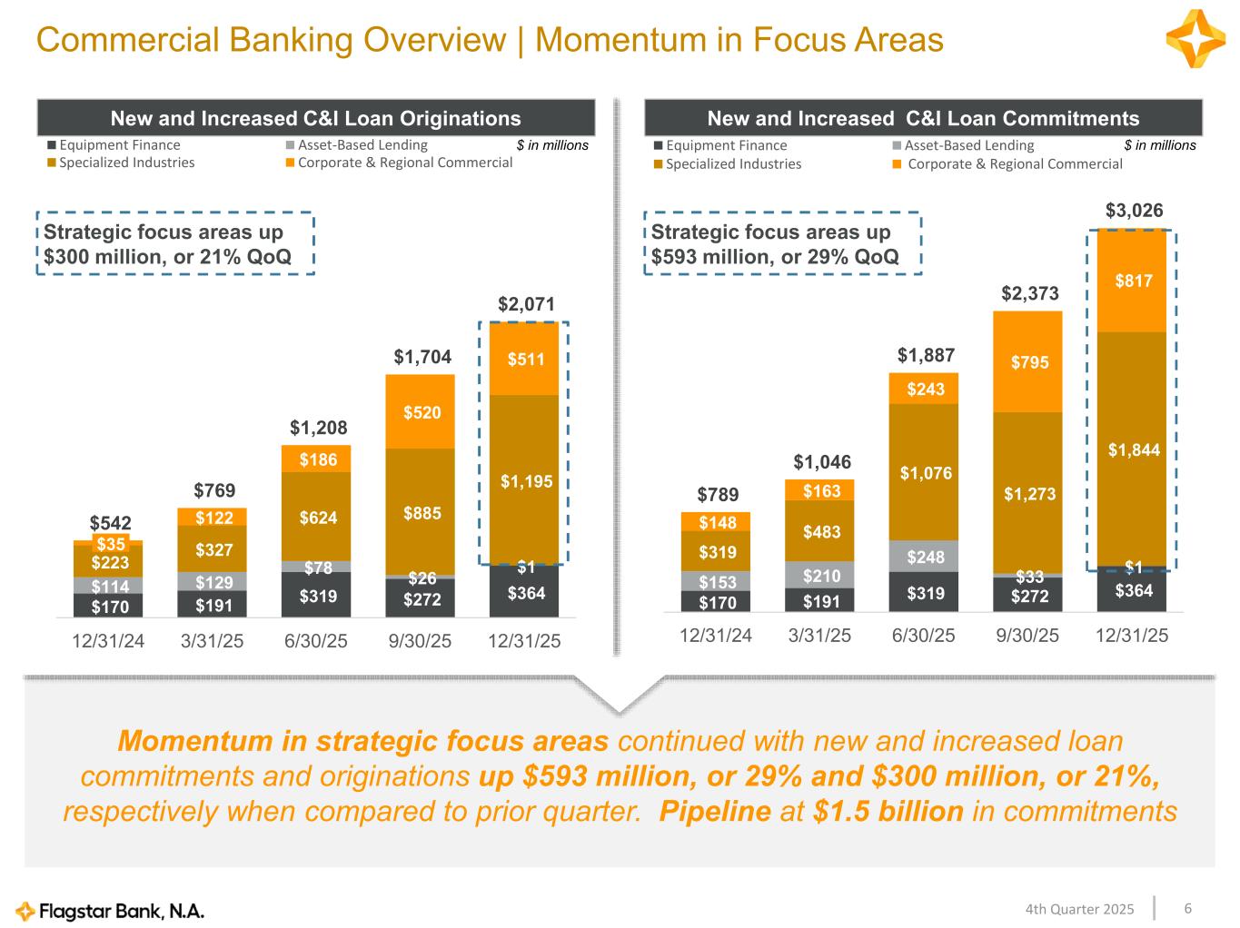 64th Quarter 2025 $170 $191 $319 $272 $364 $114 $129 $78 $26 $1 $223 $327 $624 $885 $1,195 $122 $186 $520 $511 $542 $769 $1,208 $1,704 $2,071 12/31/24 3/31/25 6/30/25 9/30/25 12/31/25 Equipment Finance Asset-Based Lending Specialized Industries Corporate & Regional Commercial Commercial Banking Overview | Momentum in Focus Areas New and Increased C&I Loan Commitments $ in millions New and Increased C&I Loan Originations $ in millions $170 $191 $319 $272 $364 $153 $210 $248 $33 $1 $319 $483 $1,076 $1,273 $1,844 $148 $163 $243 $795 $817 $789 $1,046 $1,887 $2,373 $3,026 12/31/24 3/31/25 6/30/25 9/30/25 12/31/25 Equipment Finance Asset-Based Lending Specialized Industries Corporate & Regional Commercial Strategic focus areas up $300 million, or 21% QoQ Strategic focus areas up $593 million, or 29% QoQ Momentum in strategic focus areas continued with new and increased loan commitments and originations up $593 million, or 29% and $300 million, or 21%, respectively when compared to prior quarter. Pipeline at $1.5 billion in commitments $35