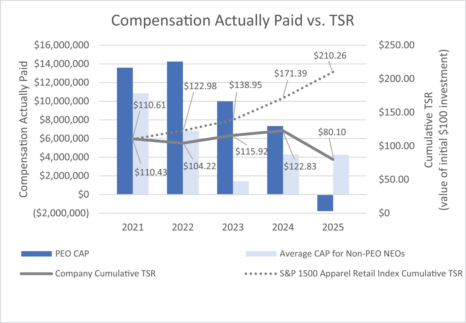 Aurelie Benarouche, the spouse of Fabrice Benarouche, is employed by us as a Senior Merchandiser Manager. For fiscal 2025, Ms. Benarouche received an annual base salary of $102,550. Ms. Benarouche was also granted an equity award of 300 shares of restricted stock. She was also entitled to participate during fiscal 2025 in the retirement, health and welfare benefit plans generally available to our other salaried employees.