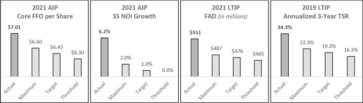 | ü | The Board delegated ESG OVERSIGHT responsibility to the Audit Committee. While the entire Board will continue to receive updates on our ESG program and assist in setting our overall ESG strategy, the Audit Committee will focus on the accuracy and controls surrounding our ESG disclosures as well as risks associated with our ESG strategy. The Compensation, Nominating and Corporate Governance, and Real Estate Investment Committees will also continue their oversight of ESG endeavors specific to their respective areas of responsibility. |