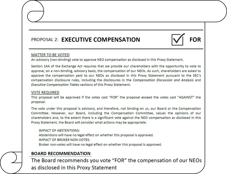 | 2 | Advisory (non-binding) vote to approve NEO compensation. | ✓ FOR | 42-71 | |