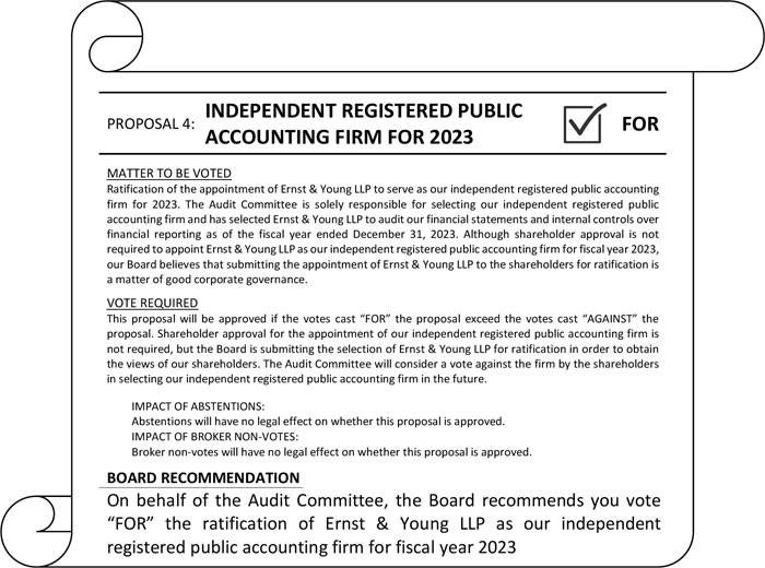 | 4 | Ratify the appointment of Ernst & Young LLP as MAA’s independent registered public accounting firm for fiscal year 2023. | ✓ FOR | 77-80 | |