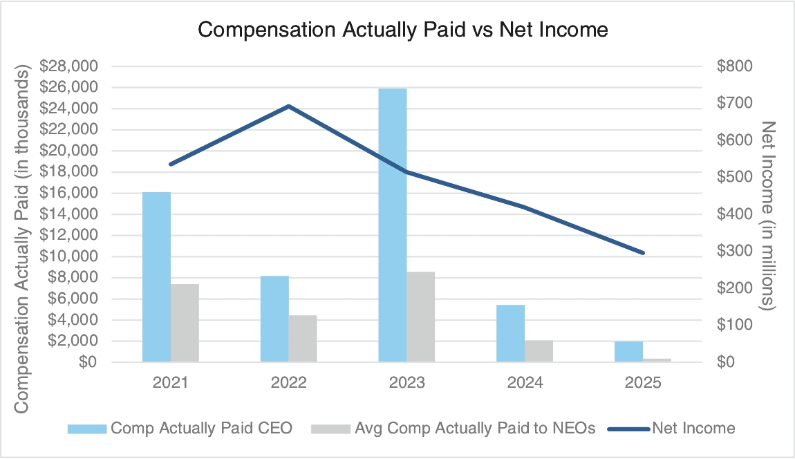 3. | Messrs. Currie and Merino retired from the Board of Directors upon the expiration of their terms at the 2025 Annual Meeting of Shareholders held on April 23, 2025, and their compensation for 2025 as reflected in the table is prorated accordingly. Mr. Rhodes was Chairman of the Personnel and Compensation Committee and earned an additional $10,000 per year for serving in that capacity as well as $20,000 for serving as Lead Independent Director. Mr. Walker was appointed to the Personnel and Compensation Committee in 2025 and earned $3,750 of the $5,000 annual director fee for service on that Committee. Mr. Walker also was Chairman of the Audit Committee and earned an additional $20,000 for serving in that capacity. Mr. Wooldridge was Chairman of the Nominating and Corporate Governance Committee and earned an additional $10,000 for serving in that capacity. |