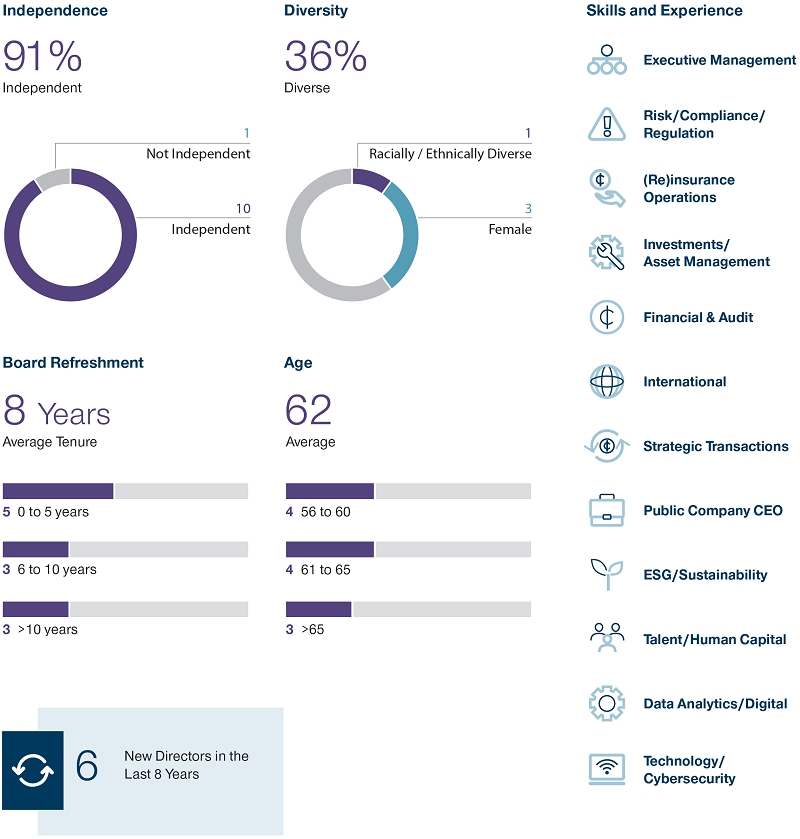 This year, we are pleased to nominate Torsten Jeworrek to stand for election as an independent director at our Annual General Meeting of Shareholders in May 2023. Dr. Jeworrek was a former Member of the Board of Management and CEO Reinsurance of Munich Reinsurance AG. We look forward to the global perspective, and wealth of risk understanding and reinsurance experience that he will bring to the Board.