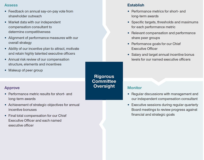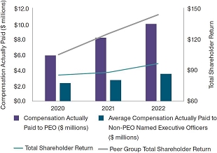 We believe that management’s strong execution of our strategy in 2022 supports long-term shareholder value creation. Consistent with our pay for performance philosophy, this strong execution, coupled with improved operating results, resulted in an above target annual incentive bonus this year. In addition, our performance shares paid out above target for the 2020 to 2022 performance period.
