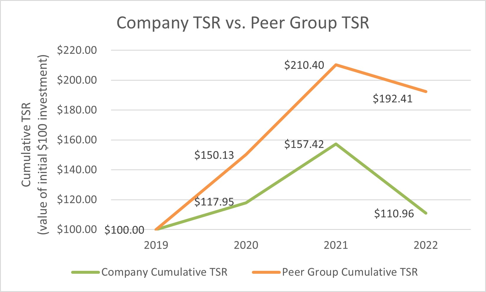 The following graph reflects the relationship between the cumulative TSR of the Company and its peer group over the three year period presented in the table. For detail regarding the composition of the peer group, see footnote 6 to the table above.