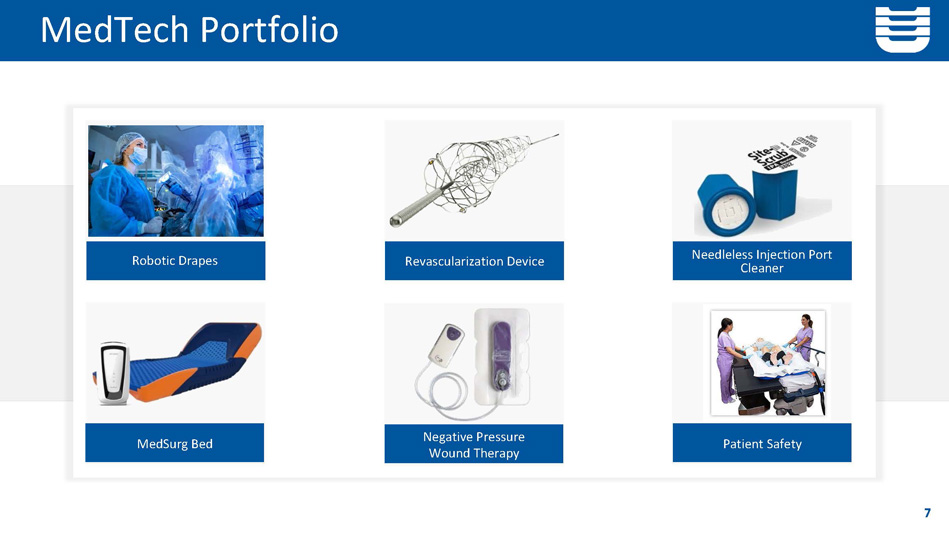 MedTech Portfolio Robotic Drapes Revascularization Device Needleless Injection Port Cleaner MedSurg Bed Negative Pressure Wound Therapy Patient Safety 7