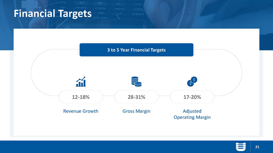 Financial Targets 21 3 to 5 Year Financial Targets 12 - 18% Revenue Growth 28 - 31% Gross Margin 17 - 20% Adjusted Operating Margin