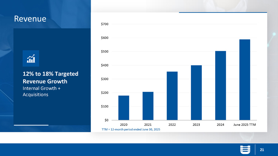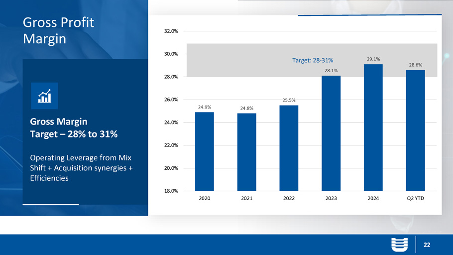 12% to 18% Targeted Revenue Growth Internal Growth + Acquisitions $0 $100 $200 $300 $400 $500 $600 $700 2020 2021 2022 2023 2024 June 2025 TTM 21 Revenue TTM = 12 - month period ended June 30, 2025