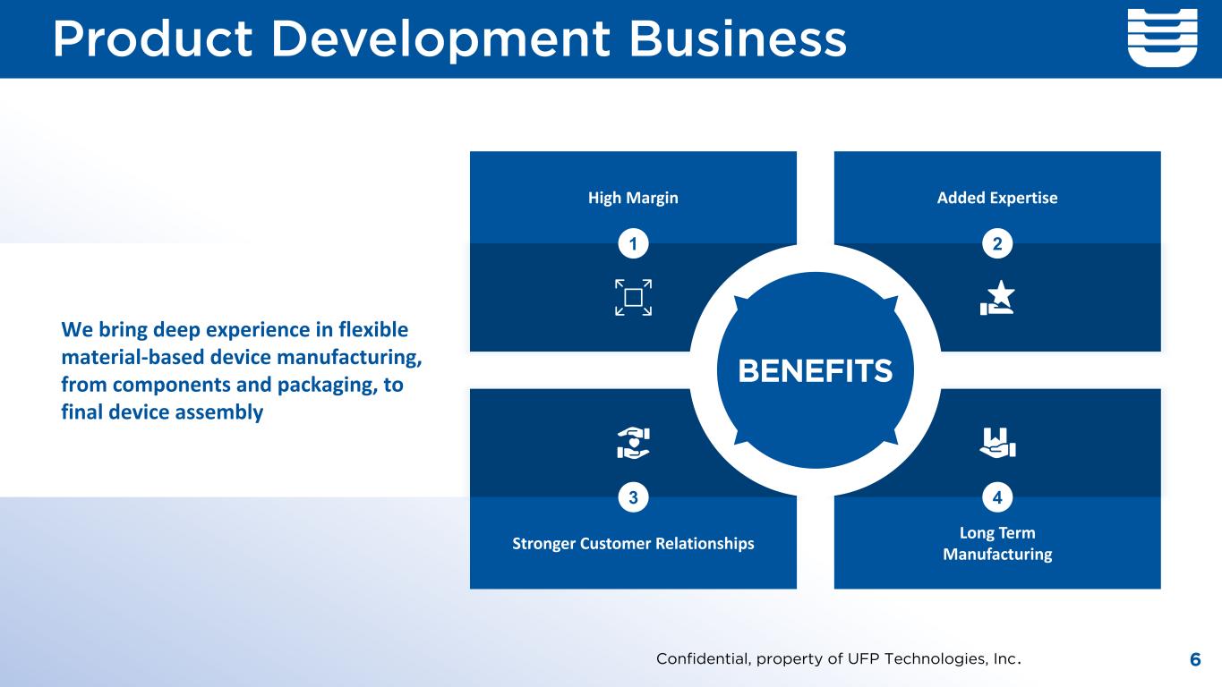 Our Process Innovative process from design and engineering to manufacturing and delivery 5Confidential, property of UFP Technologies, Inc.