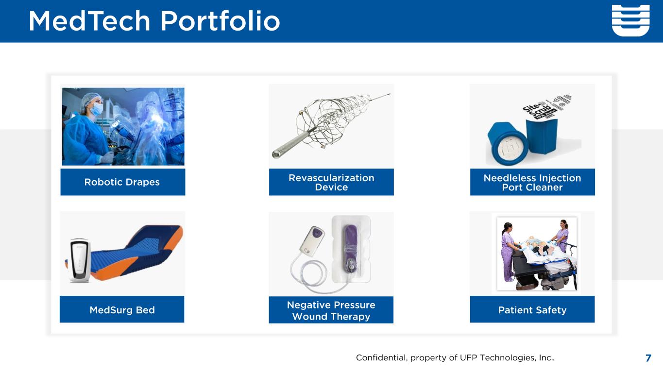 MedTech Portfolio Robotic Drapes Revascularization Device Needleless Injection Port Cleaner MedSurg Bed Negative Pressure Wound Therapy Patient Safety 7Confidential, property of UFP Technologies, Inc.
