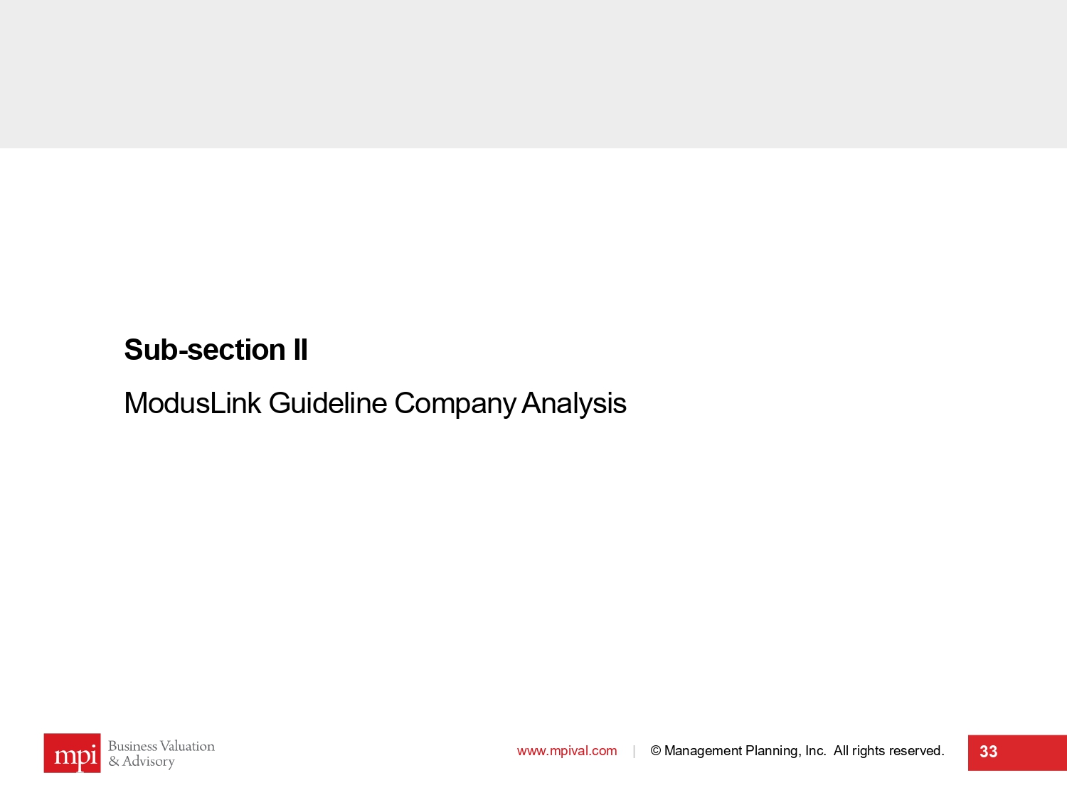 Sub - section II ModusLink Guideline Company Analysis www.mpival.com | © Management Planning, Inc. All rights reserved. 33