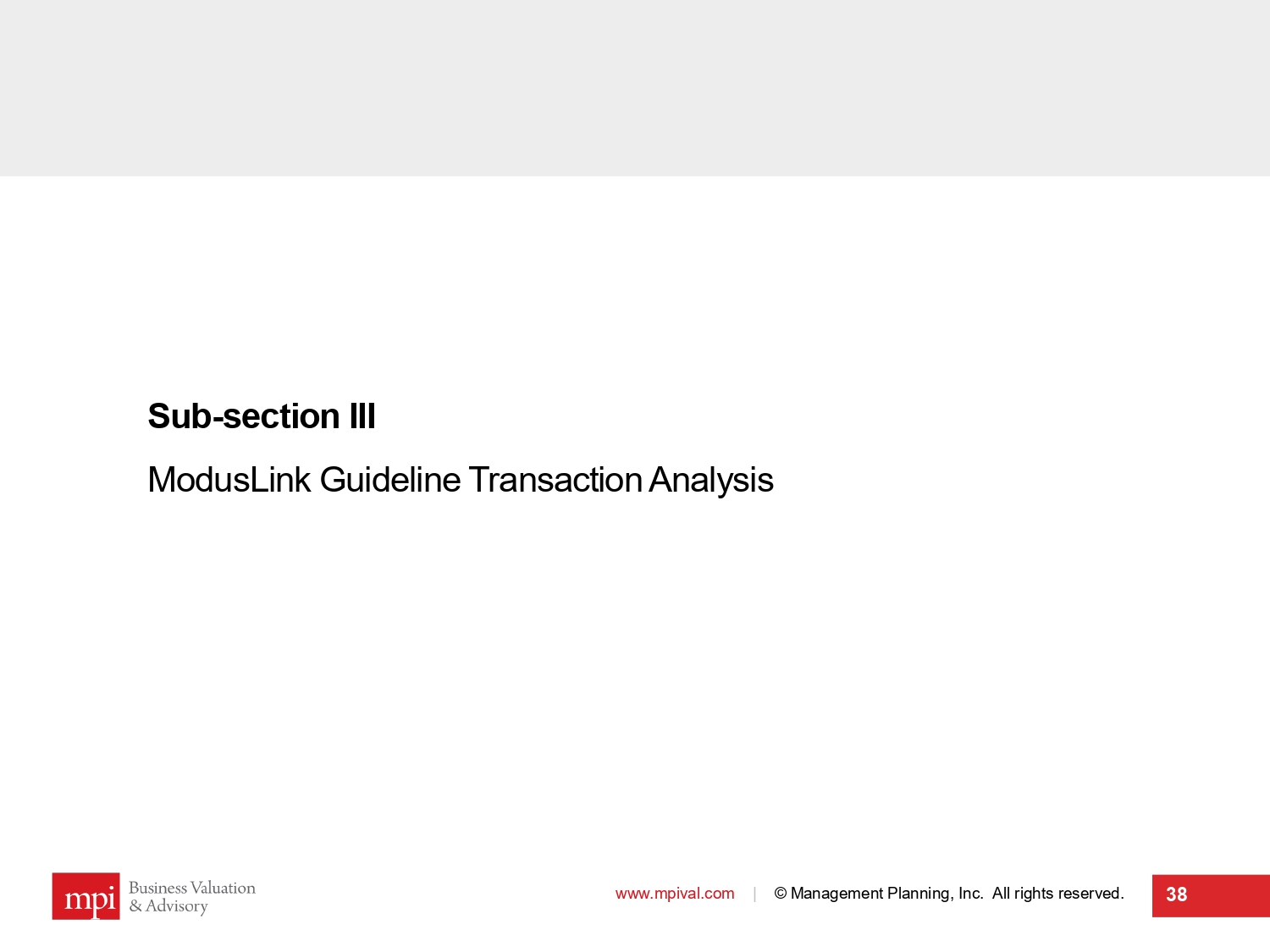 Sub - section III ModusLink Guideline Transaction Analysis www.mpival.com | © Management Planning, Inc. All rights reserved. 38