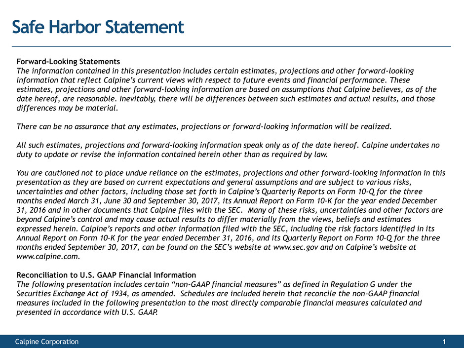 All such estimates, projections and forward-looking information speak only as of the date hereof. Calpine undertakes no