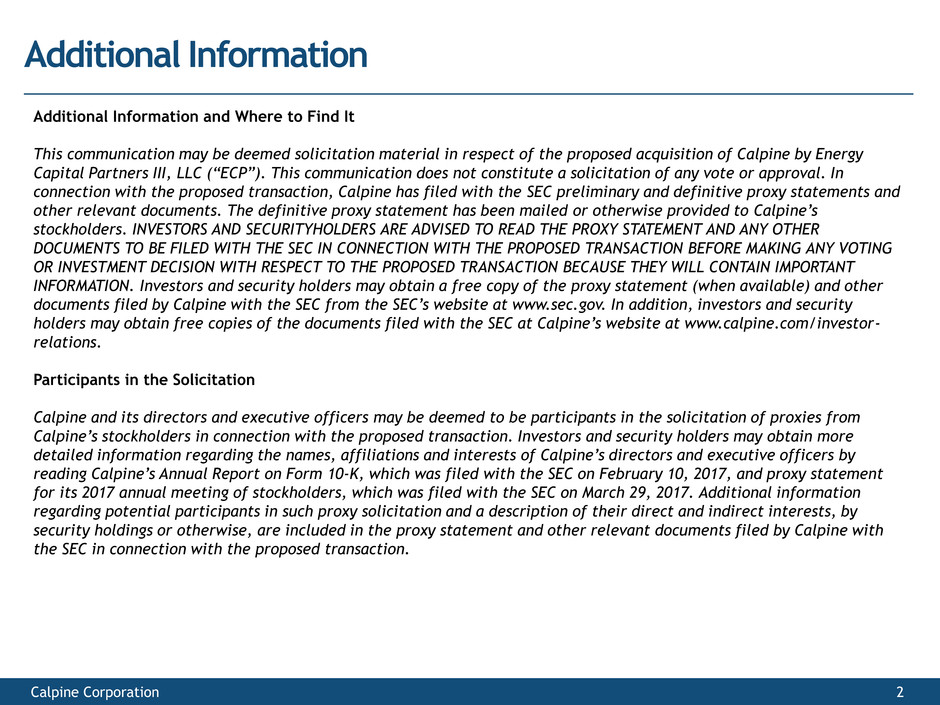 reading Calpine’s Annual Report on Form 10-K, which was filed with the SEC on February 10, 2017, and proxy statement