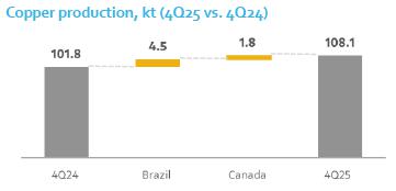 copper production increased by 0.5 kt y/y, reaching 18.6 kt in Q4, supported by strong asset utilization and stable operations. |