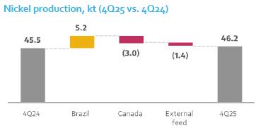 | • | Sudbury: own sourced finished nickel production decreased by 2.4 kt y/y, reaching 8.2 kt in the quarter, driven by unscheduled maintenance of the reactor #3, with ongoing preventive maintenance into Q1. | ![]() |