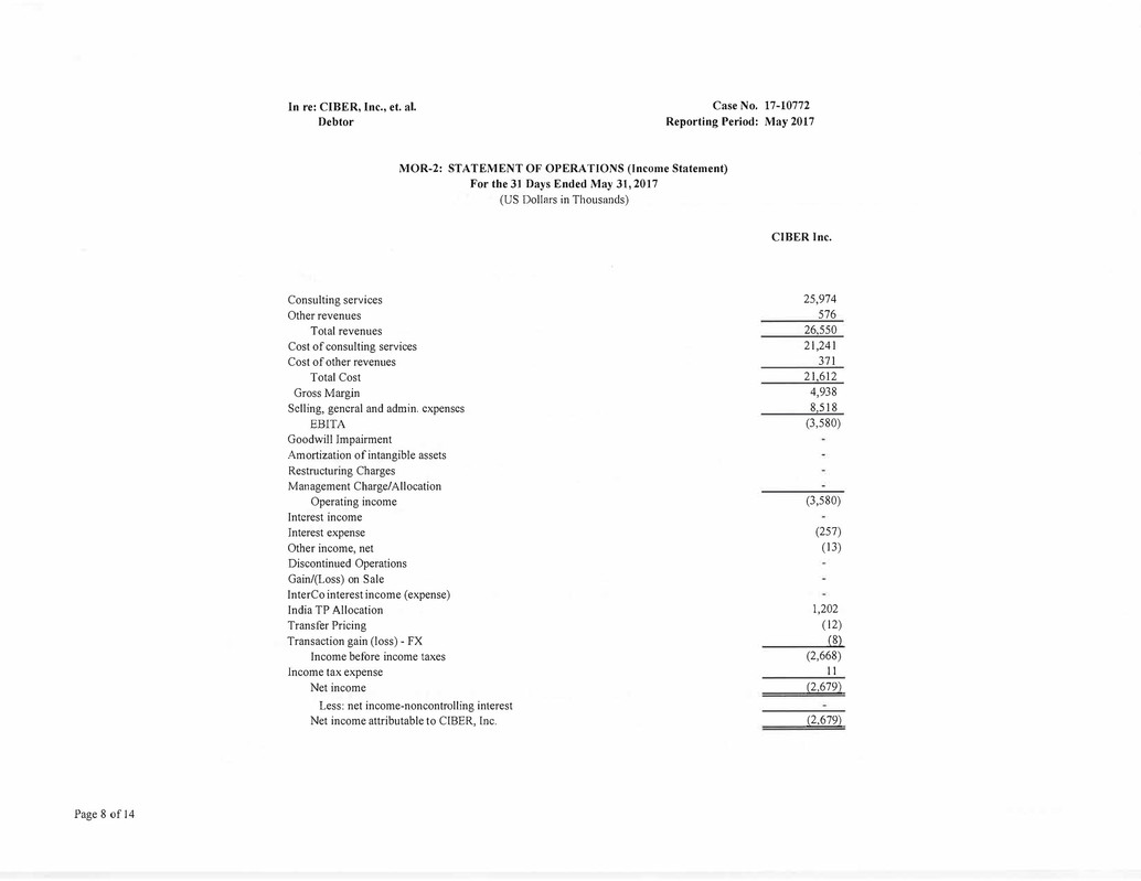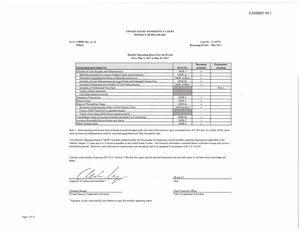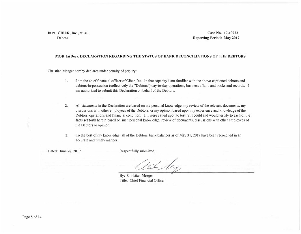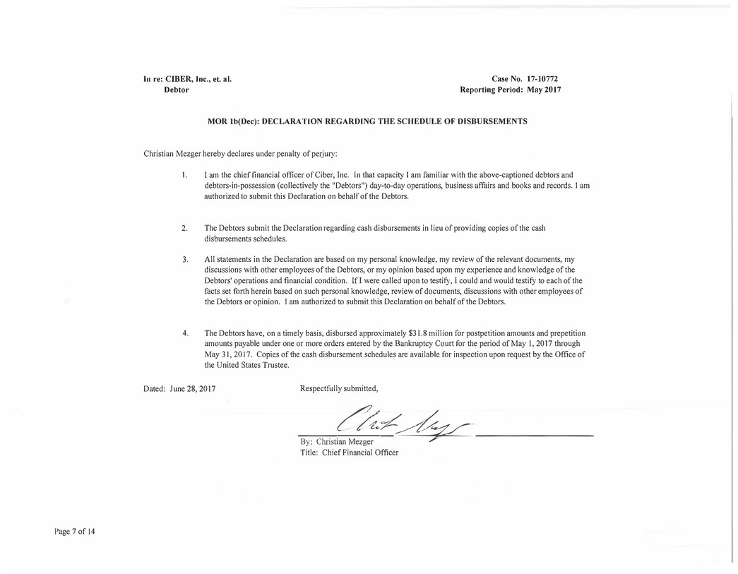 1. I am the chief financial officer of Ciber, Tnc. In that capacity I am familiar with the above-captioned debtors and