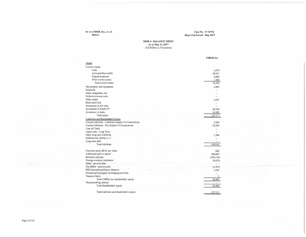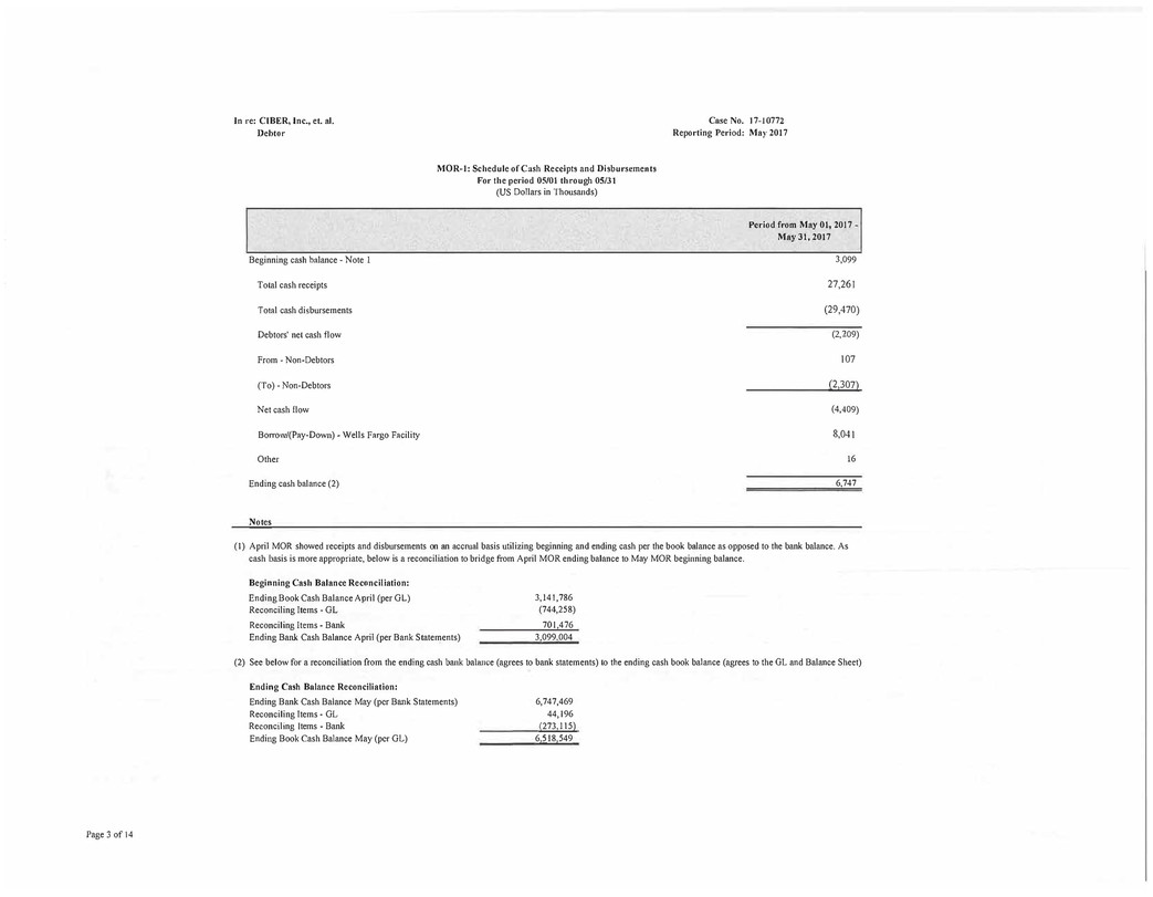 This Monthly Operating Report ("MOR") has been prepared solely for the purpose of complying with the montl1Jy reporting requirements applicable in the