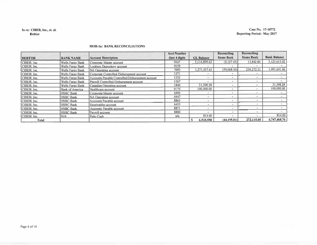 Bank Reconciliation /or conies of debtor's bank reconciliations)