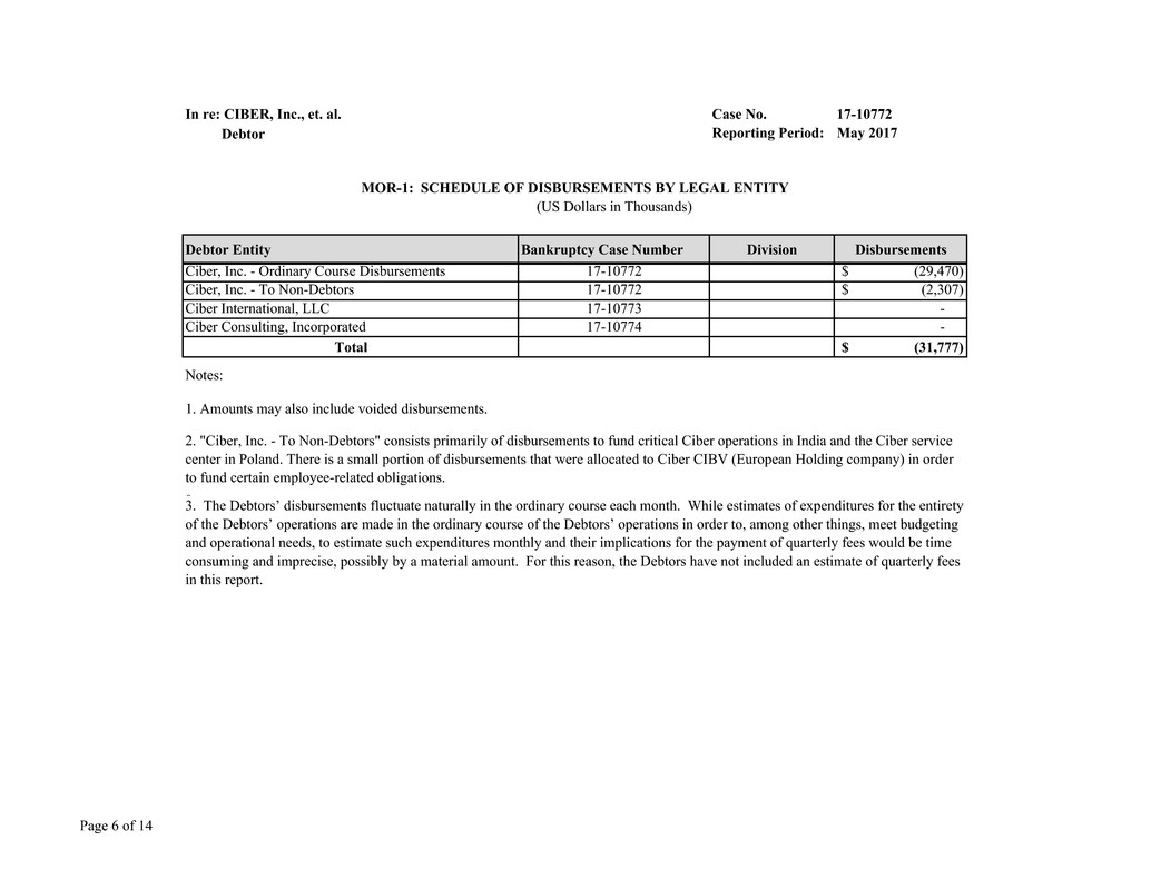 Note I - Restructuring professional fees are being accrued throughout the case and will be paid out upon successful close ofS.363 sale. As a result oftl1is, tl1cre