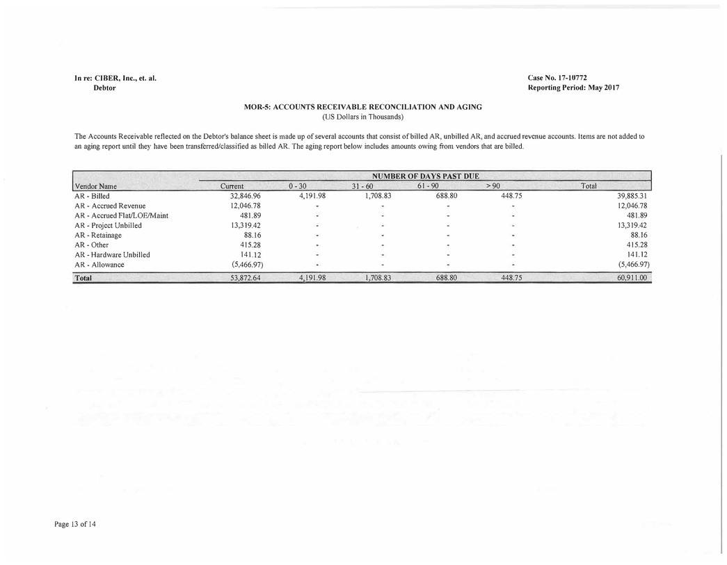 MOR-5: ACCOUNTS RECEIVABLE RECONCILIATION AND AGING