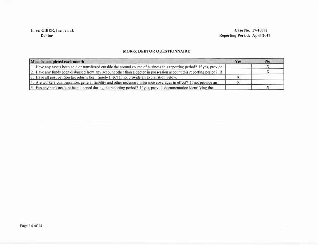 2. Have anv funds been disbursed from anv account other than a debtor in possession account this reoorting period? If X