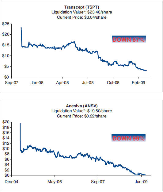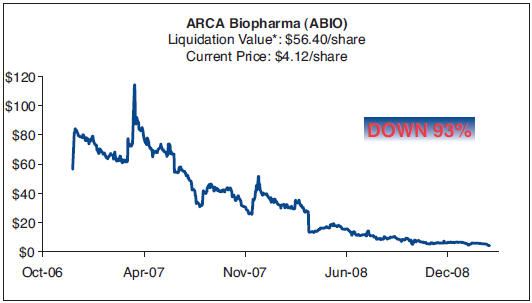 intervention, Avigen’s stock traded at a mere 33% of the cash in the bank and at