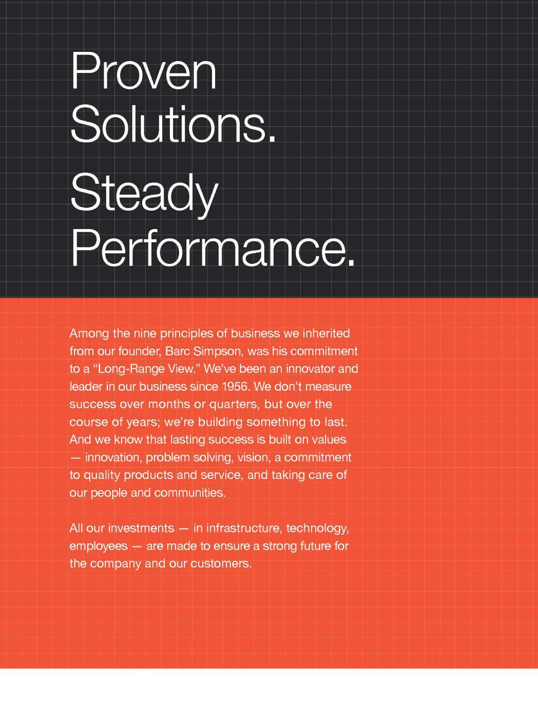 To our stockholders, customers, and employees For more than 68 years, Simpson Strong-Tie has dedicated itself to our company mission of delivering innovative solutions that help people design and build safer, stronger structures. 2 Simpson Manufacturing Co., Inc.