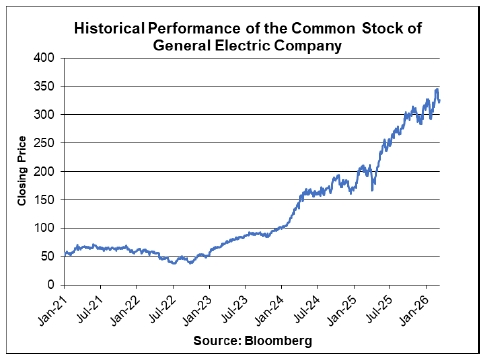 The following graph sets forth daily closing prices of the common stock of General Electric Company for the period from January 4, 2021 to March 11, 2026. The closing price on March 11, 2026 was $325.15. The historical performance of the common stock of General Electric Company should not be taken as an indication of its future performance during the term of the securities.