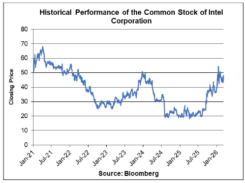 The following graph sets forth daily closing prices of the common stock of Intel Corporation for the period from January 4, 2021 to March 11, 2026. The closing price on March 11, 2026 was $47.98. The historical performance of the common stock of Intel Corporation should not be taken as an indication of its future performance during the term of the securities.