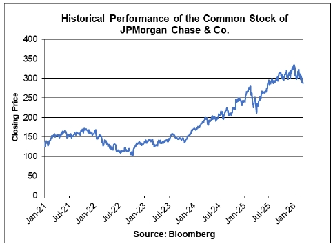 The following graph sets forth daily closing prices of the common stock of JPMorgan Chase & Co. for the period from January 4, 2021 to March 11, 2026. The closing price on March 11, 2026 was $287.52. The historical performance of the common stock of JPMorgan Chase & Co. should not be taken as an indication of its future performance during the term of the securities.
