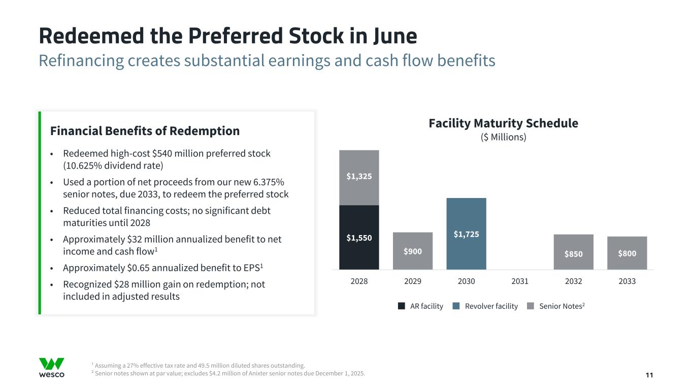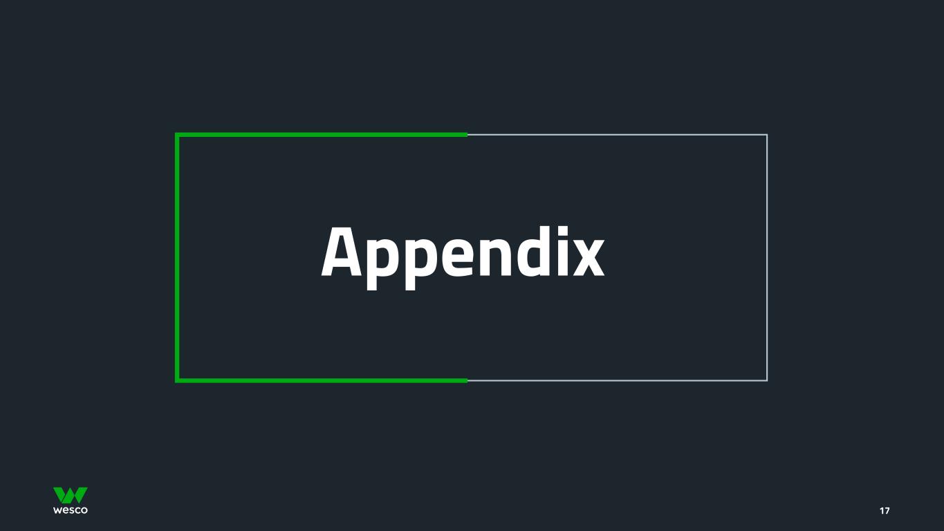 Forward-Looking Statements and Non-GAAP Measures 2 All statements made herein that are not historical facts should be considered as "forward-looking statements" within the meaning of the Private Securities Litigation Reform Act of 1995. Such statements involve known and unknown risks, uncertainties and other factors that may cause actual results to differ materially. These statements include, but are not limited to, statements regarding business strategy, growth strategy, competitive strengths, productivity and profitability enhancement, competition, new product and service introductions, and liquidity and capital resources. Such statements can generally be identified by the use of words such as "anticipate," "plan," "believe," "estimate," "intend," "expect," "project," and similar words, phrases or expressions or future or conditional verbs such as "could," "may," "should," "will," and "would," although not all forward-looking statements contain such words. These forward-looking statements are based on current expectations and beliefs of Wesco's management, as well as assumptions made by, and information currently available to, Wesco's management, current market trends and market conditions and involve risks and uncertainties, many of which are outside of Wesco's and Wesco's management's control, and which may cause actual results to differ materially from those contained in forward-looking statements. Accordingly, you should not place undue reliance on such statements. Important factors that could cause actual results or events to differ materially from those presented or implied in the forward-looking statements include, among others, the failure to achieve the anticipated benefits of, and other risks associated with, acquisitions, joint ventures, divestitures and other corporate transactions; the inability to successfully integrate acquired businesses; the impact of increased interest rates or borrowing costs; fluctuations in currency exchange rates; evolving impacts from tariffs or other trade tensions between the U.S. and other countries (including implementation of new tariffs and retaliatory measures); failure to adequately protect Wesco's intellectual property or successfully defend against infringement claims; the inability to successfully deploy new technologies, digital products and information systems or to otherwise adapt to emerging technologies in the marketplace, such as those incorporating artificial intelligence; failure to execute on our efforts and programs related to environmental, social and governance (ESG) matters; unanticipated expenditures or other adverse developments related to compliance with new or stricter government policies, laws or regulations, including those relating to data privacy, sustainability and environmental protection; the inability to successfully develop, manage or implement new technology initiatives or business strategies, including with respect to the expansion of e-commerce capabilities and other digital solutions and digitalization initiatives; disruption of information technology systems or operations; natural disasters (including as a result of climate change), health epidemics, pandemics and other outbreaks; supply chain disruptions; geopolitical issues, including the impact of the evolving conflicts in the Middle East and Russia/Ukraine; the impact of sanctions imposed on, or other actions taken by the U.S. or other countries against, Russia or China; the failure to manage the increased risks and impacts of cyber incidents or data breaches; and exacerbation of key materials shortages, inflationary cost pressures, material cost increases, demand volatility, and logistics and capacity constraints, any of which may have a material adverse effect on the Company's business, results of operations and financial condition. All such factors are difficult to predict and are beyond the Company's control. Additional factors that could cause results to differ materially from those described above can be found in Wesco's most recent Annual Report on Form 10-K and other periodic reports filed with the U.S. Securities and Exchange Commission. Non-GAAP Measures In addition to the results provided in accordance with U.S. Generally Accepted Accounting Principles (“U.S. GAAP”) above, this presentation includes certain non-GAAP financial measures. These financial measures include organic sales growth, gross profit, gross margin, earnings before interest, taxes, depreciation and amortization (EBITDA), adjusted EBITDA, adjusted EBITDA margin, financial leverage, free cash flow, adjusted selling, general and administrative expenses, adjusted income from operations, adjusted operating margin, adjusted other non-operating expense (income), adjusted provision for income taxes, adjusted income before income taxes, adjusted net income, adjusted net income attributable to WESCO International, Inc., adjusted net income attributable to common stockholders, and adjusted earnings per diluted share. The Company believes that these non-GAAP measures are useful to investors as they provide a better understanding of our financial condition and results of operations on a comparable basis. Additionally, certain non-GAAP measures either focus on or exclude items impacting comparability of results such as digital transformation costs, restructuring costs, merger-related and integration costs, cloud computing arrangement amortization, pension settlement cost and excise taxes on excess pension plan assets related to the settlement of the Anixter Inc. Pension Plan, loss on abandonment of assets, the gain recognized on the divestiture of the WIS business, the loss on termination of business arrangement, and the related income tax effects, allowing investors to more easily compare the Company's financial performance from period to period. Management does not use these non-GAAP financial measures for any purpose other than the reasons stated above.