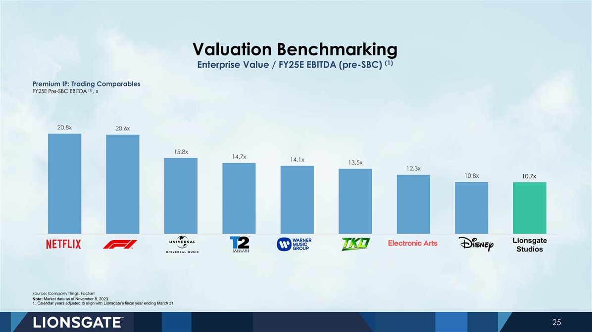 Answer: At the $10.70 per share transaction price, Lionsgate Studios is being valued at 10.7x fiscal 2025 Adjusted OIBDA, which includes a $60 million annual run-rate contribution of Adjusted OIBDA from eOne.