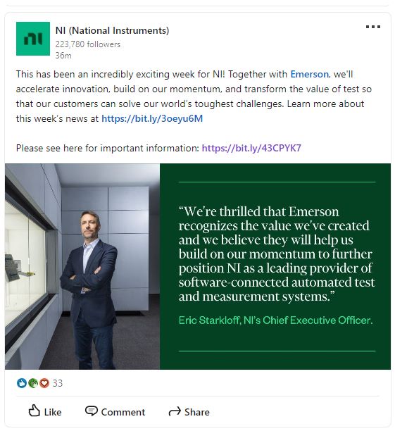 The following post made by National Instruments Corporation on April 14, 2023: