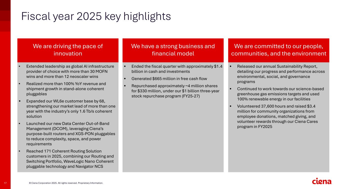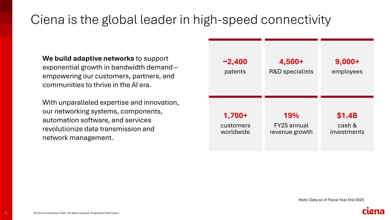 © Ciena Corporation 2025. All rights reserved. Proprietary Information. Ciena is positioned for accelerated growth