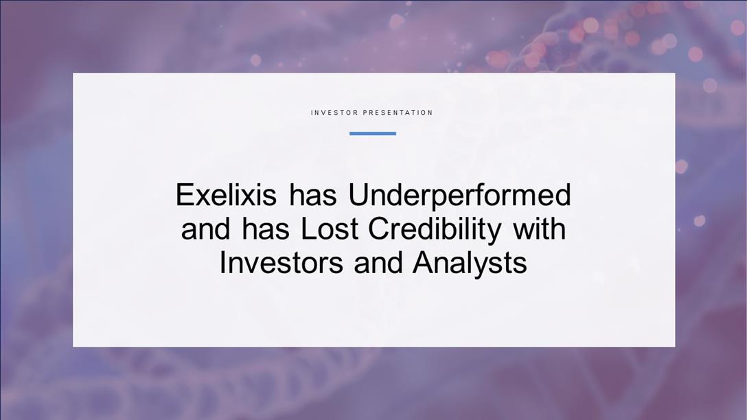 INVESTOR PRESENTATION Exelixis has Underperformed and has Lost Credibility with Investors and Analysts