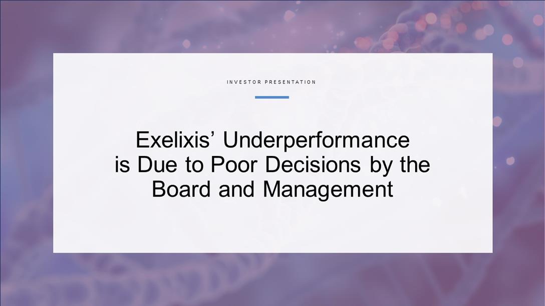 INVESTOR PRESENTATION Exelixis ’ Underperformance is Due to Poor Decisions by the Board and Management