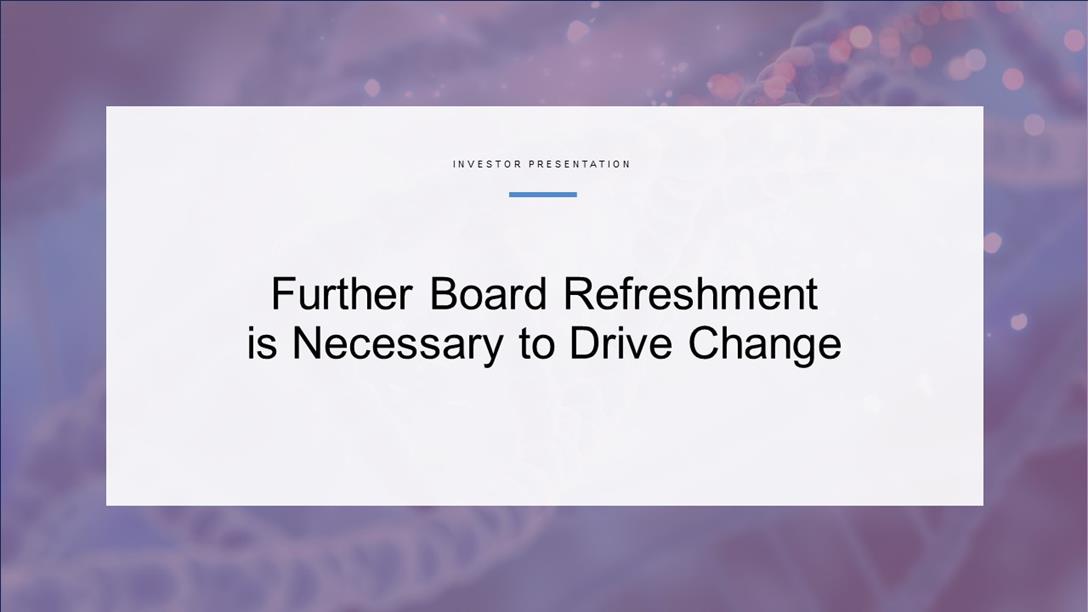 INVESTOR PRESENTATION Further Board Refreshment is Necessary to Drive Change
