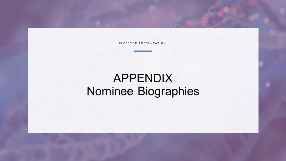 INVESTOR PRESENTATION APPENDIX Nominee Biographies