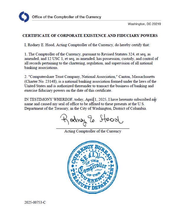 COMPUTERSHARE TRUST COMPANY, NATIONAL ASSOCIATION