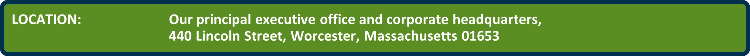 LOCATION: Our principal executive office and corporate headquarters, 440 Lincoln Street, Worcester, Massachusetts 01653