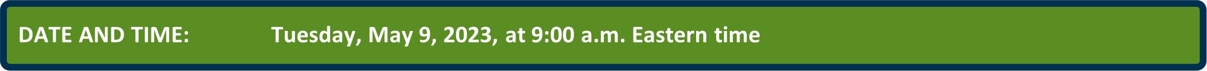 DATE AND TIME: Tuesday, May 9, 2023, at 9:00 a.m. Eastern time