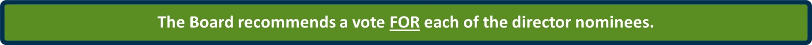 The accompanying Notice and Proxy Statement describe in detail the matters to be acted on at the Annual Meeting. This Proxy Statement also describes the corporate governance policies and practices that guide the Board’s oversight of the Company’s business, risks, conduct, and environmental, social and governance considerations for the long-term benefit of our stakeholders. The Board, on behalf of our shareholders, is actively engaged in the governance, audit, compensation and other matters addressed in this Proxy Statement.