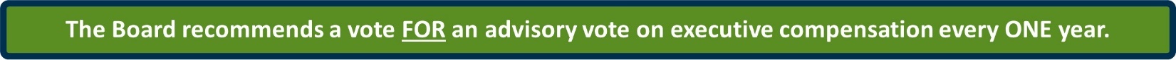 The affirmative vote of a majority of the votes properly cast (in person or by proxy). If none of the three frequency options receives the vote of the holders of a majority of the votes properly cast, we will consider the frequency option (one year, two years or three years) receiving the highest number of votes cast by shareholders to be the frequency that has been recommended by shareholders. |